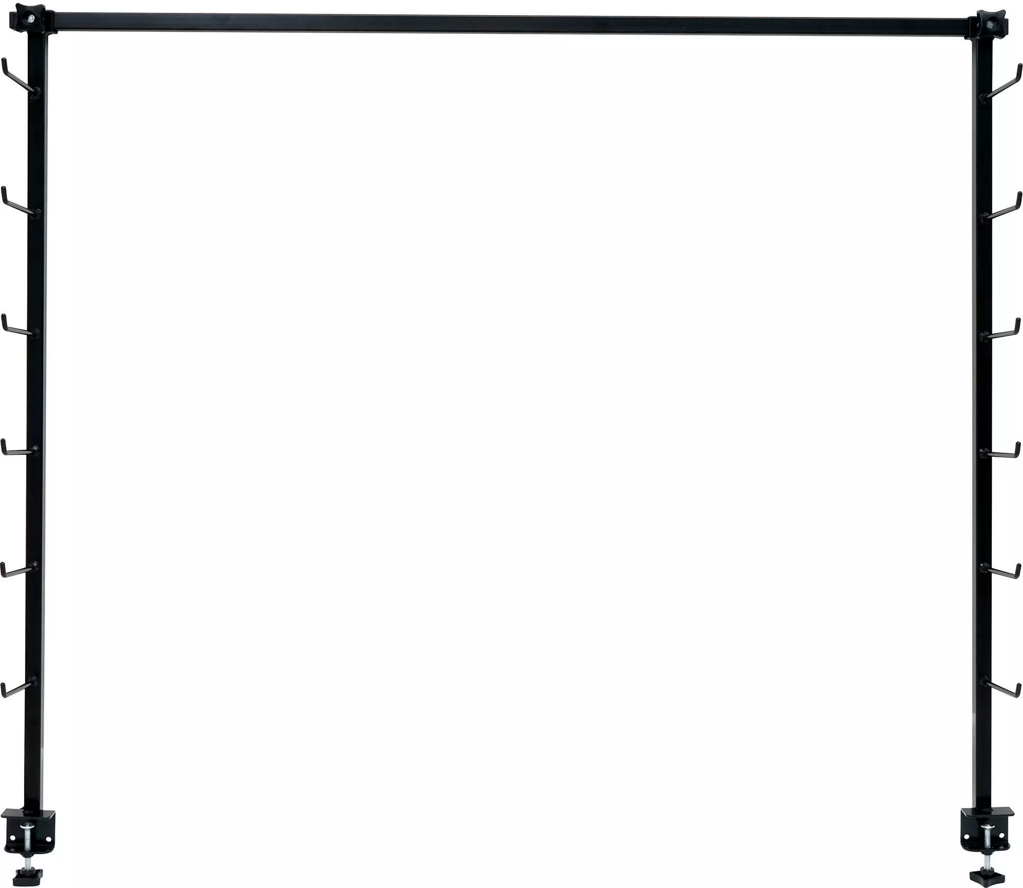 Sie können die Skier auf die “Regalhalterungen” stellen und Präparationsgeräte und eine Lampe an die Querhalterung hängen. Verwenden Sie S-Haken, um z. B. Bürsten aufzuhängen.